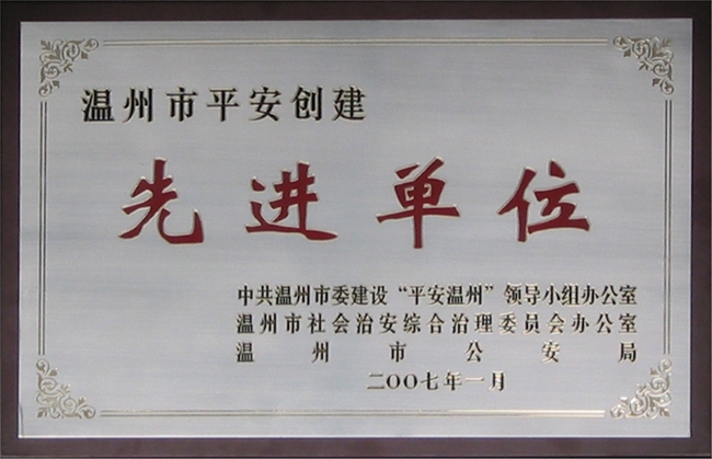• 2007年温州平安创建先进单位