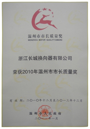 • 2010年温州市市长质量奖