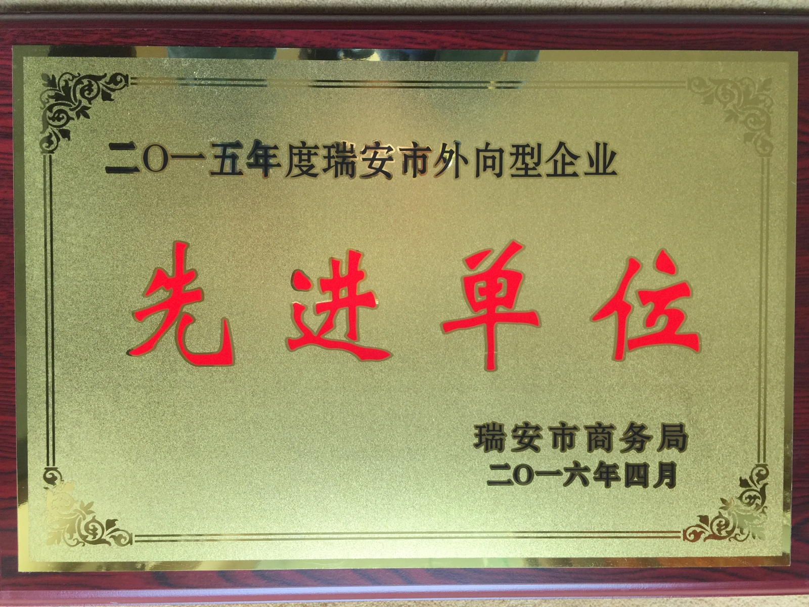 • 2015年度瑞安市外向型企业先进单位