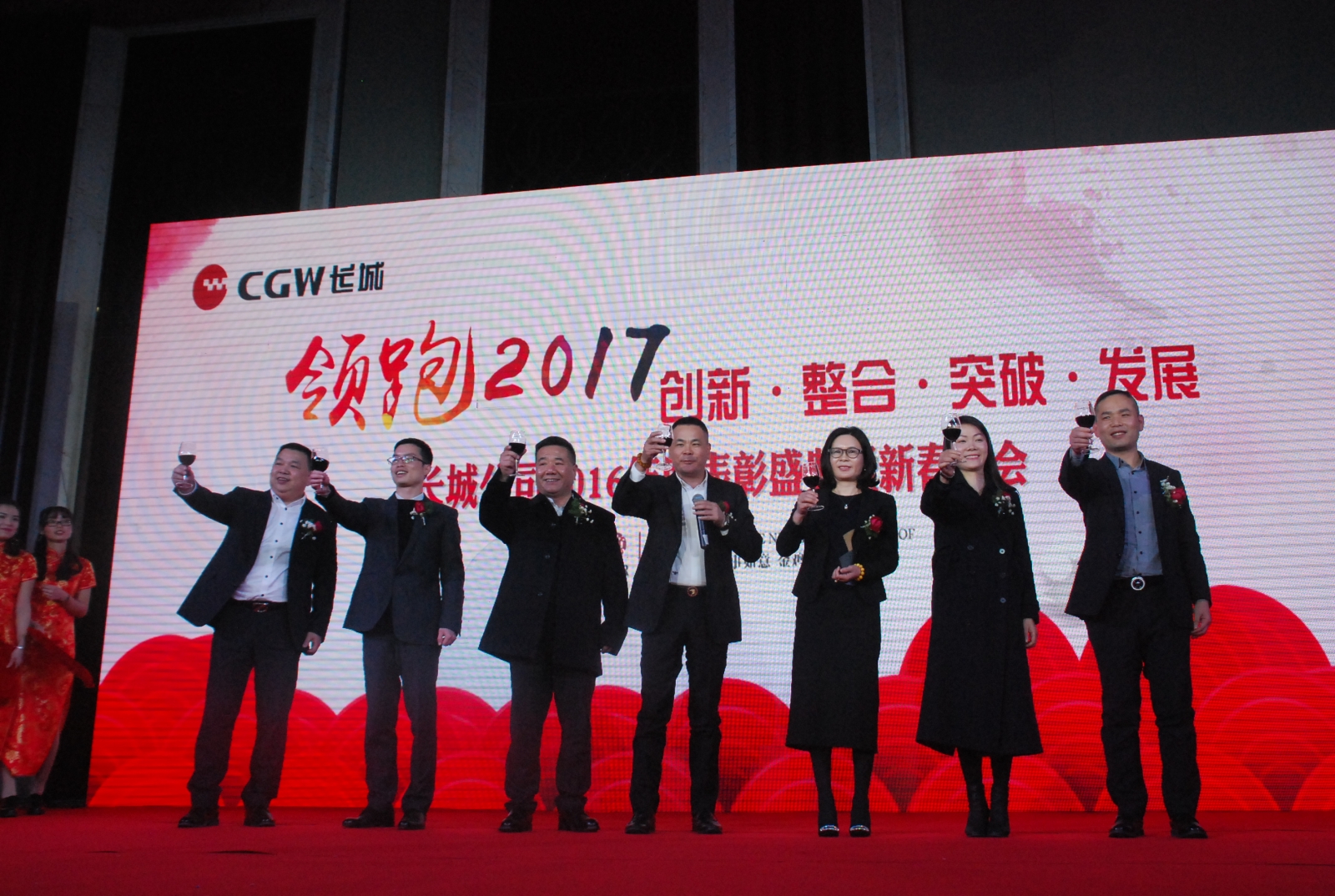 一段精心制作的《回顾长城企业发展历程》沙画展示拉开了本次表彰大会的序幕。随后公司董事长林祥清作新春致辞,并带领公司领导班子向全体员工拜年,致以新春问候和衷心祝福,并勉励大家携手努力,再创长城人更加美好的明天。林祥清在致辞中回顾了公司在2016年取得的来之不易的成绩,并针对公司当前面临的突出问题提出了公司2017年的工作思路、工作目标及主要措施。他强调,2017年我们将继续在压力与挑战中砥砺前行,以“创新、整合、突破、发展”为总方针,全体干部员工团结一致,顽强拼搏,撸起袖子加油干,就一定能够走好长城健康发展之路、实现长城百年品牌百年企业的梦想。随后,大会表彰了一批在2016年为公司发展做出突出贡献的先进集体和个人。表彰晚会中穿插着员工们自编自演的节目,精彩纷呈,热烈的气氛感染着全场,掌声笑声不断。为员工献上了一场独具特色的视听盛宴。炫动的荧光舞、动感十足的女生现代舞、明星模仿秀、诙谐搞笑的小品《长城四大才子》令整场晚会高潮迭起。晚会的最后,董事长林祥清为43名在长城工作满15年及以上的老员工每人发放了一部iphone7plus手机,并表示从今年起这将成为公司固定的福利政策,赢得现场一片欢呼叫好声。