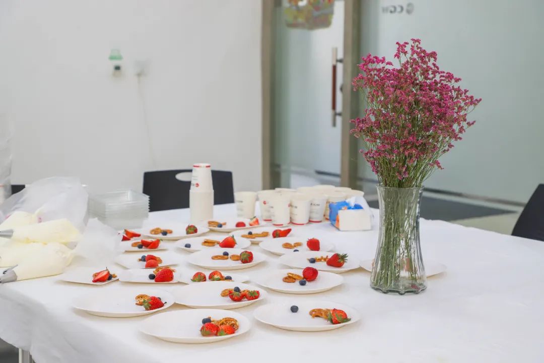 烘焙老师先细致地讲解了蛋糕的制作方法,并进行演示。在老师的指导下,心灵手巧的女职工们全情投入到制作过程中。纷纷用现打奶油、新鲜水果制作出精致、美味的蛋糕。