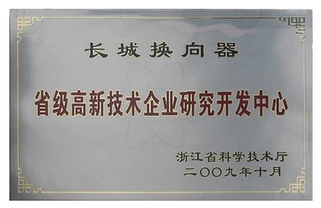 2009年省级高新技术企业研发中心证书